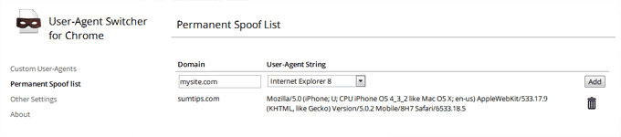 If you want to use Chrome or Firefox and selectively instruct users to use IE, have at it. ... On XP, and Windows 7 it was a joke, on Windows 10 it's actually much closer ... Firefox and I am asking web developers to test their website with Microsoft .... Available Preset UAs: Firefox on Windows 10, Microsoft Edge, Chrome on Android, Safari (on iPhone, iPadOS and macOS), Google Bot and .... Chameleon is a new extension for Mozilla Firefox that is a port of the Firefox add-on Random Agent Spoofer for the browser.. You can change the user agent string in Mozilla Firefox. This can be done either with an extension or natively using a special option on the .... User-Agent Switcherby Alexander Schlarb. Easily override the browser's User-Agent string. ... Pretending to be a different browser can be useful in a number of different situations:. Quickly and easily switch between popular user-agent strings. ... Note: this addon is a revived version of User-Agent Switcher and is written with web-extensions API. ... User-Agent Switcher (revived) can quickly and easily changes your browser's user-agent. 3d2ef5c2b0 Debookee 6.1.0